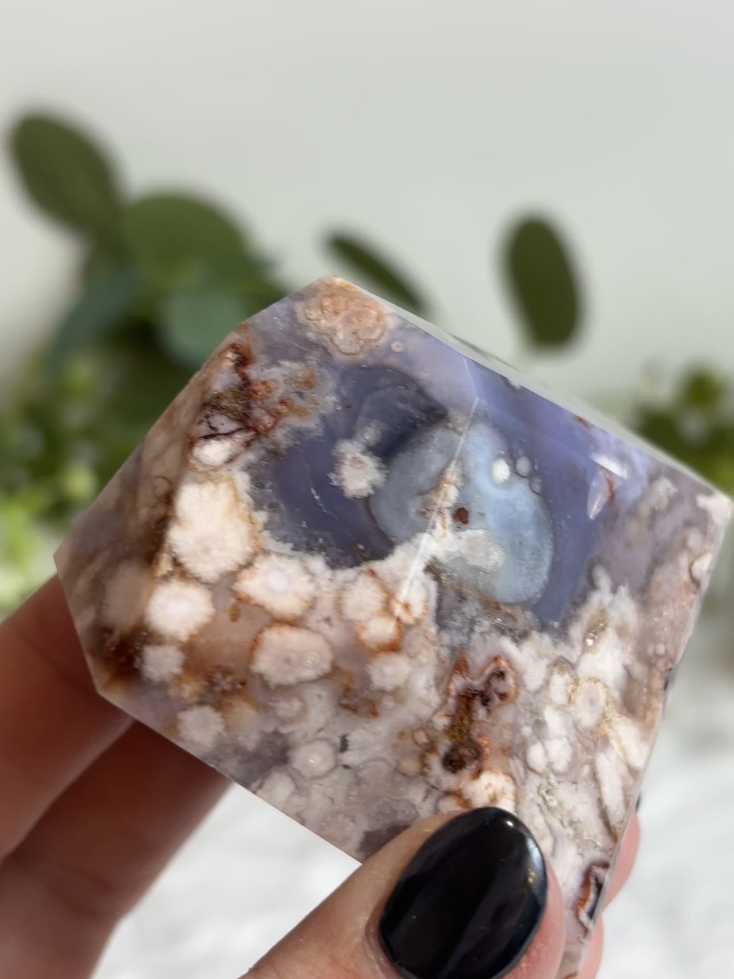 ✦ Blue Flower Agate is a soothing stone known for its soft blue tones and delicate floral-like patterns. It’s believed to promote emotional healing, inner peace, and clear communication, making it perfect for calming energy and spiritual growth.