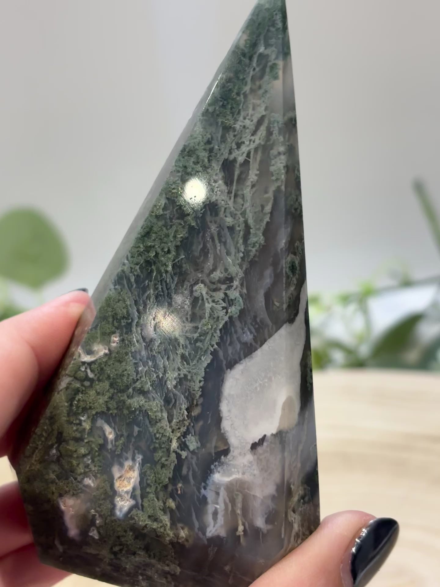 ✦ Moss Agate is deeply connected to nature and grounding energy. It promotes growth, abundance, and emotional balance, making it perfect for manifesting intentions and soothing stress. With its earthy green patterns, Moss Agate brings a calming, nurturing energy to any space or practice.