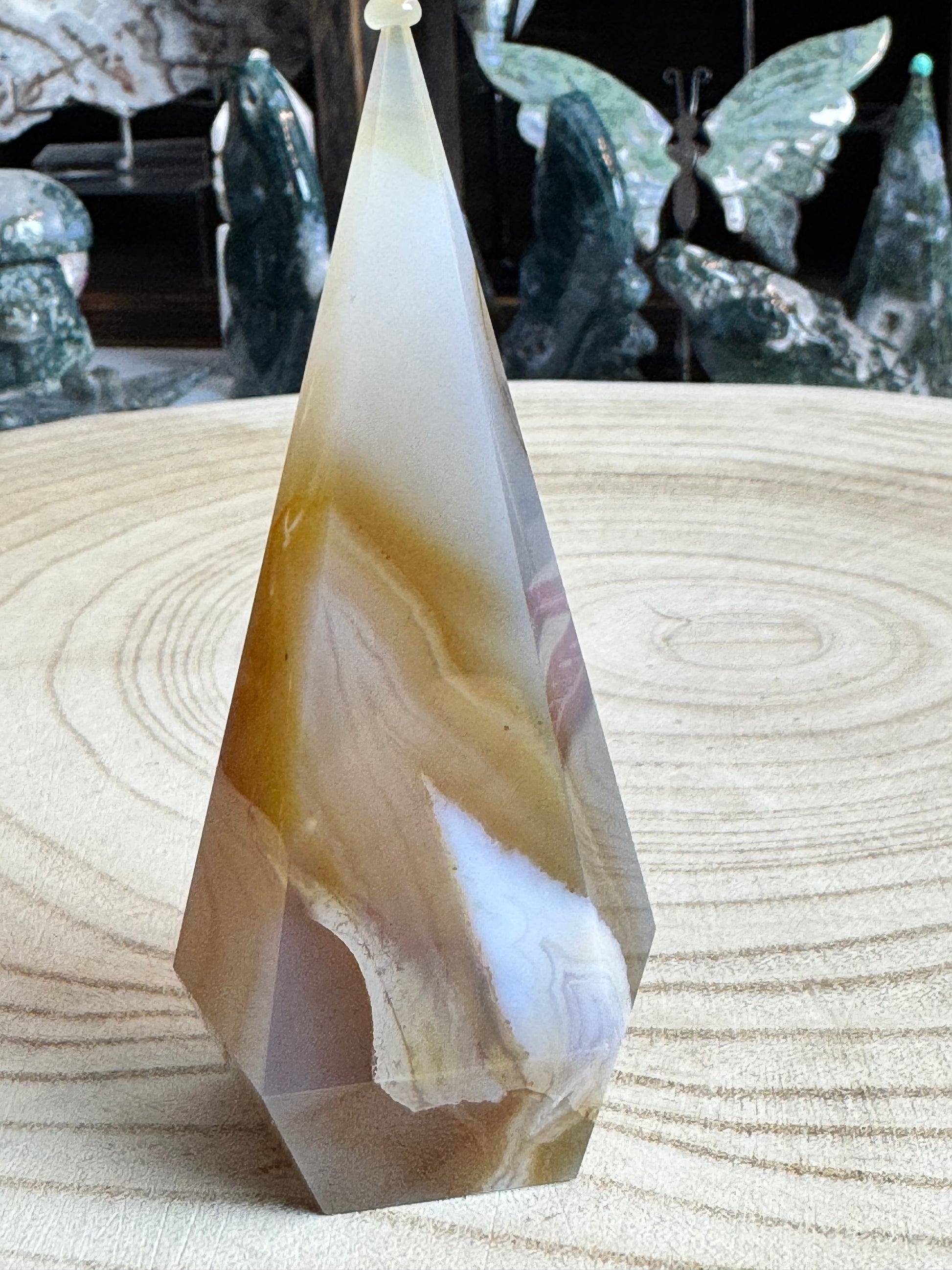 ✦ Lace Agate is a calming and gentle stone that brings peace of mind, soothes anxiety, and encourages open, heartfelt communication, making it ideal for emotional healing and self-expression.