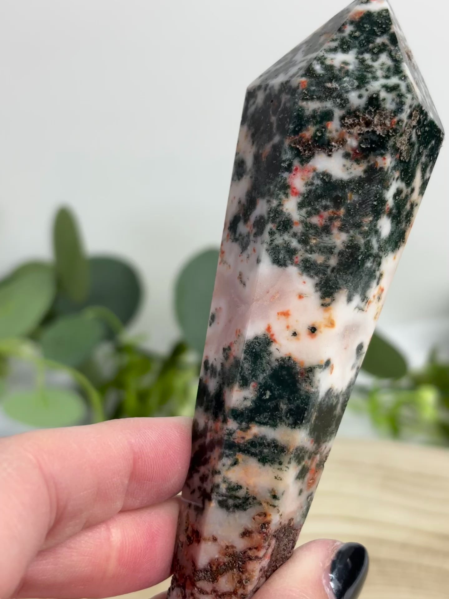 ✦ Moss Agate is known for its grounding and stabilizing properties. It’s believed to promote emotional balance, reduce stress, and encourage new beginnings. Often called the “stone of abundance,” it’s also associated with attracting prosperity and growth, both physically and spiritually. Its calming energy makes it a popular choice for healing and nature connection.
