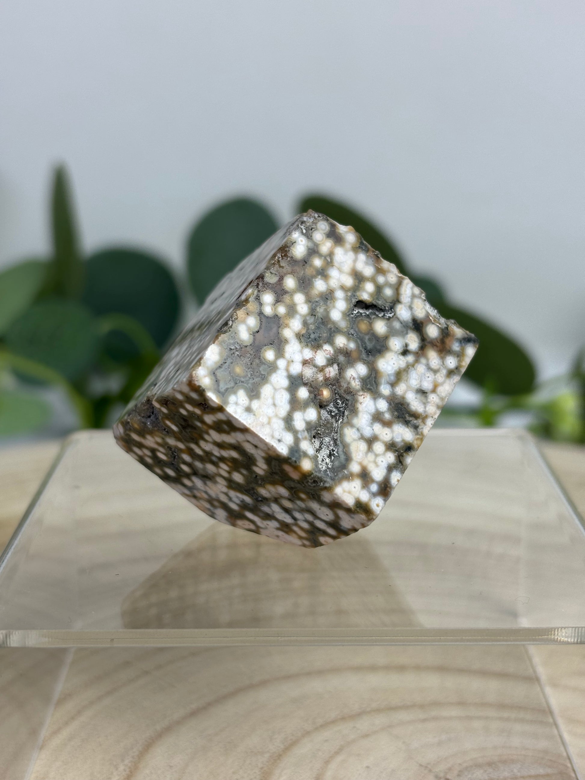 ✦ Ocean Jasper activates and aligns our solar plexus, heart, and throat chakras. This highly energetic channel allows one the ability to combine their will with their emotions, pushing one to achieve joy, happiness and emotional stability.